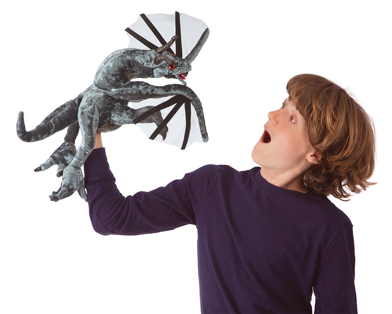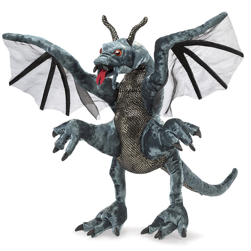 Plyšový drak "Jabberwock" je strašidelný i okouzlující. Tato plyšová loutka je inspirovaná literaturou a má ocelově modrou velurovou kůži se stříbrnými šupinami, drápy a tesáky, které okouzlí každého jakmile ho přivedete k životu.